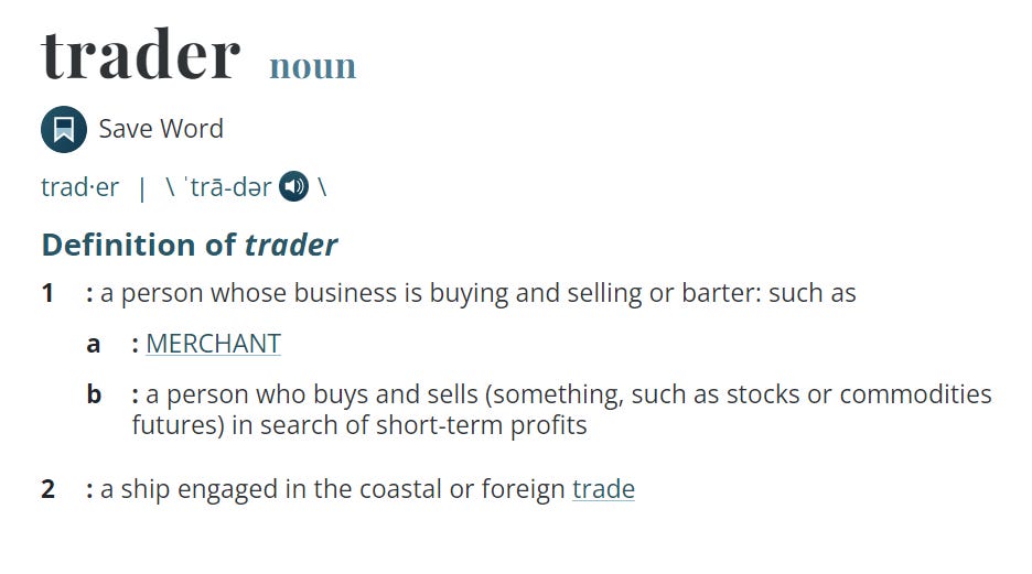 Well, Miriam Webster’s dictionary defines a Trader as