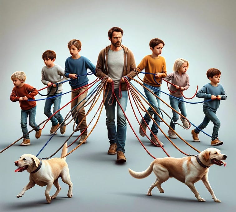 The battle leash exercise can also be done outside & around the neighborhood. For extra fun, add multiple leashes because none of them will go in the same direction at the same time.