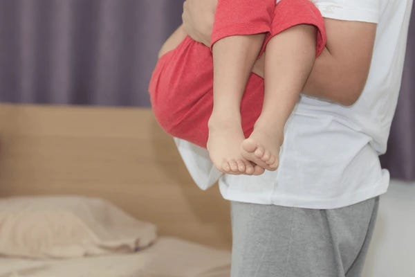 Lift in a smooth and steady fashion. Do not yank the child upward.